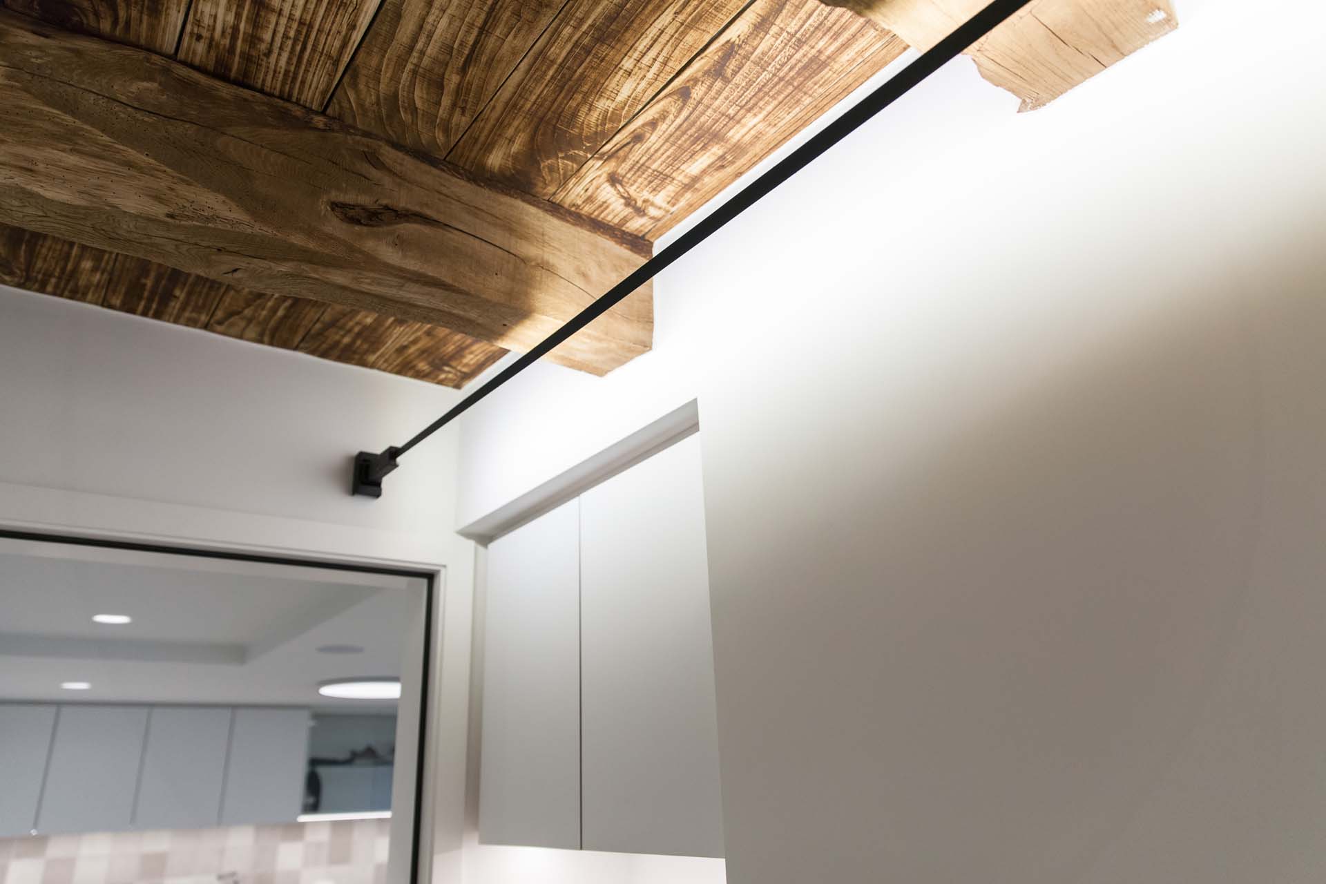 Lors d’une démolition, il arrive qu’un beau détail architectural apparaisse et que nous ayons envie de le mettre en valeur… C’est le cas chez ce client, qui a immédiatement été séduit lorsque nous avons proposé de laisser l’ancienne charpente visible et de la sublimer grâce au ruban de lumière qu’est INFINITO https://www.davidegroppi.com/lamp/infinito/. Ce profil, certainement un des plus fins du marché, dématérialise la lumière et s’efface pour mieux laisser place à l’espace. Une pure merveille de technologie et de raffinement.
