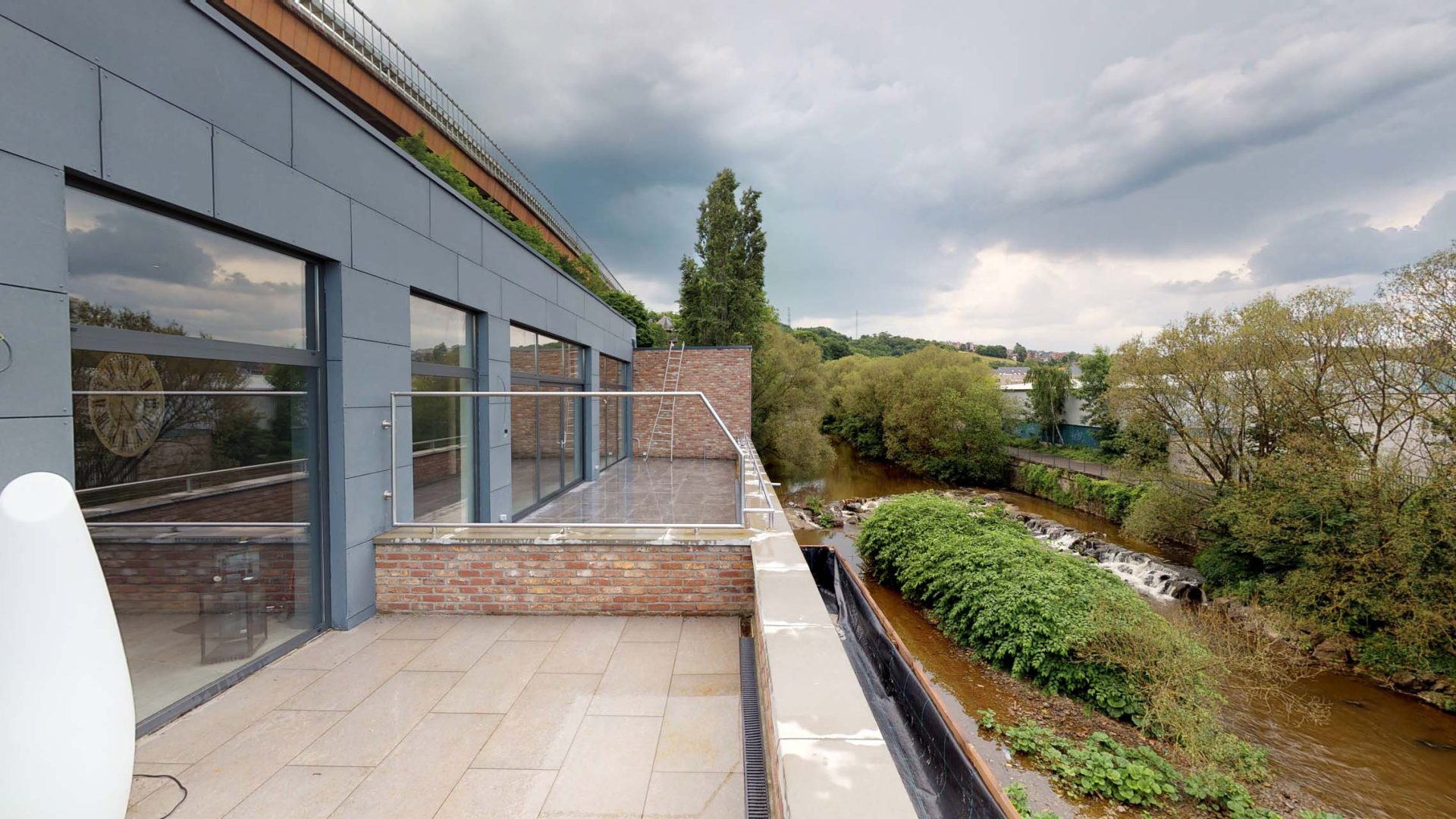Sur des chancres industriels, il a décidé de créer deux magnifiques lofts, emplis de lumière, avec une vue imprenable (85 m2 de terrasse) surplombant la Vesdre — qui s’étire aux pieds du bâtiment — et la naissance de la Ville…