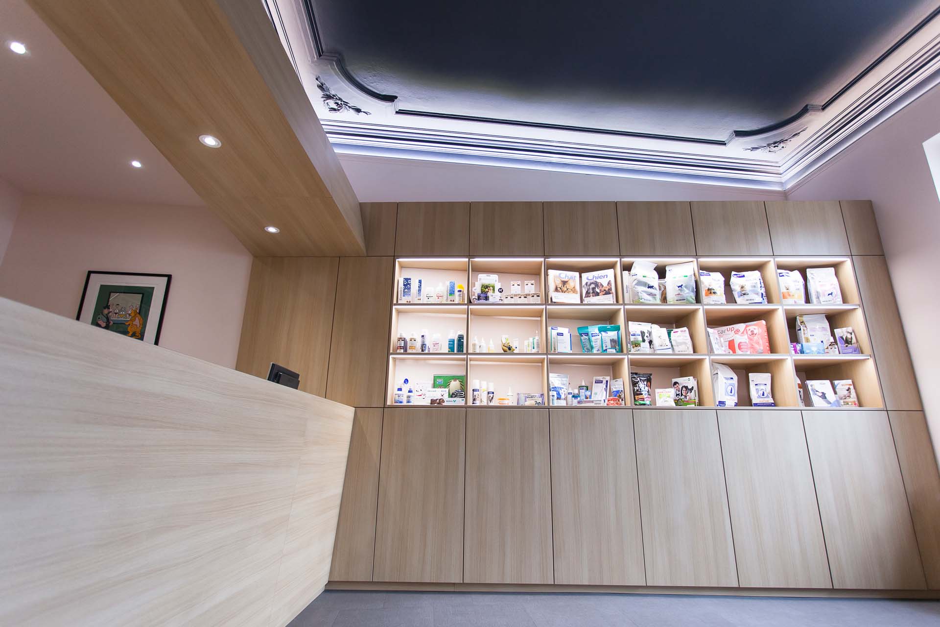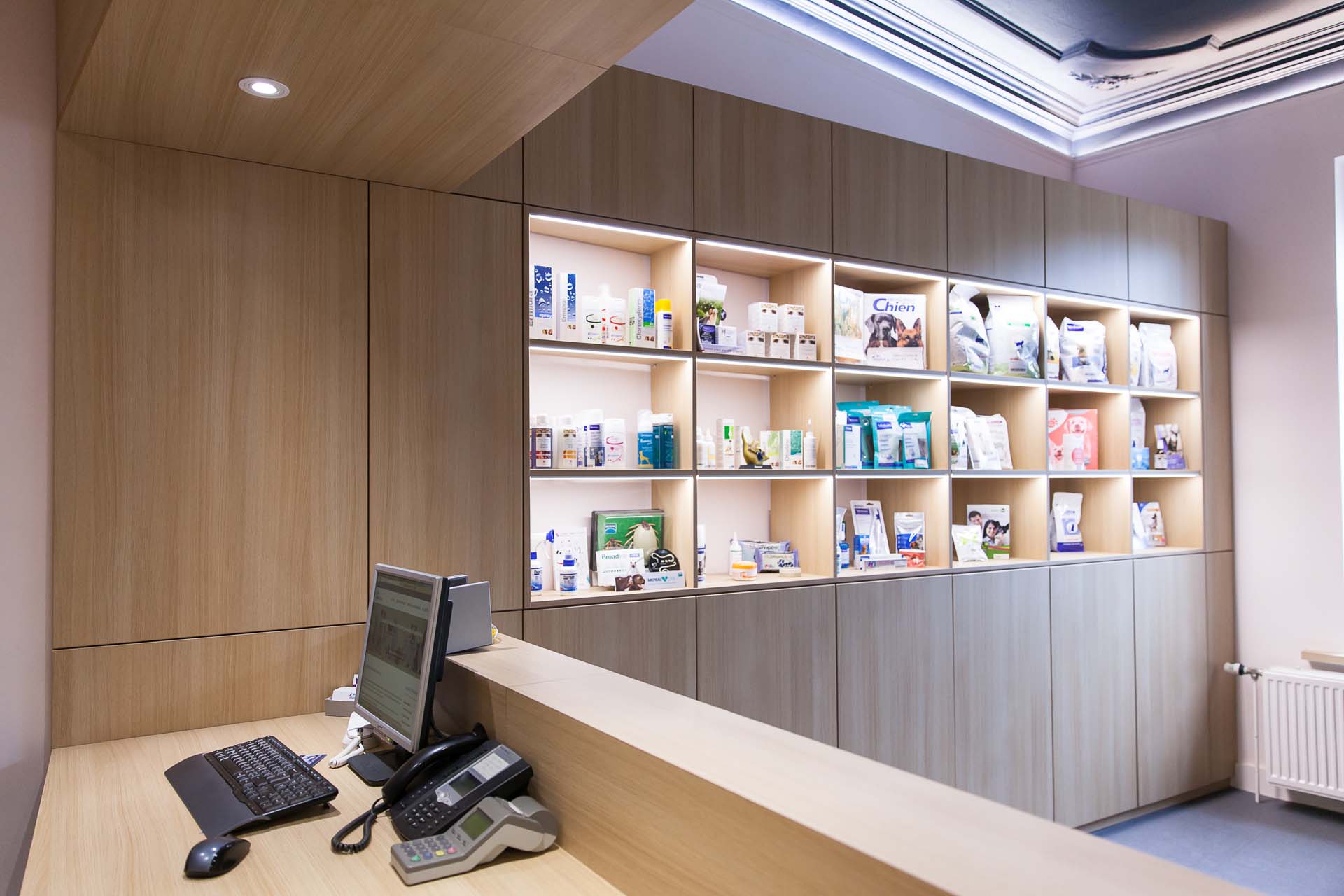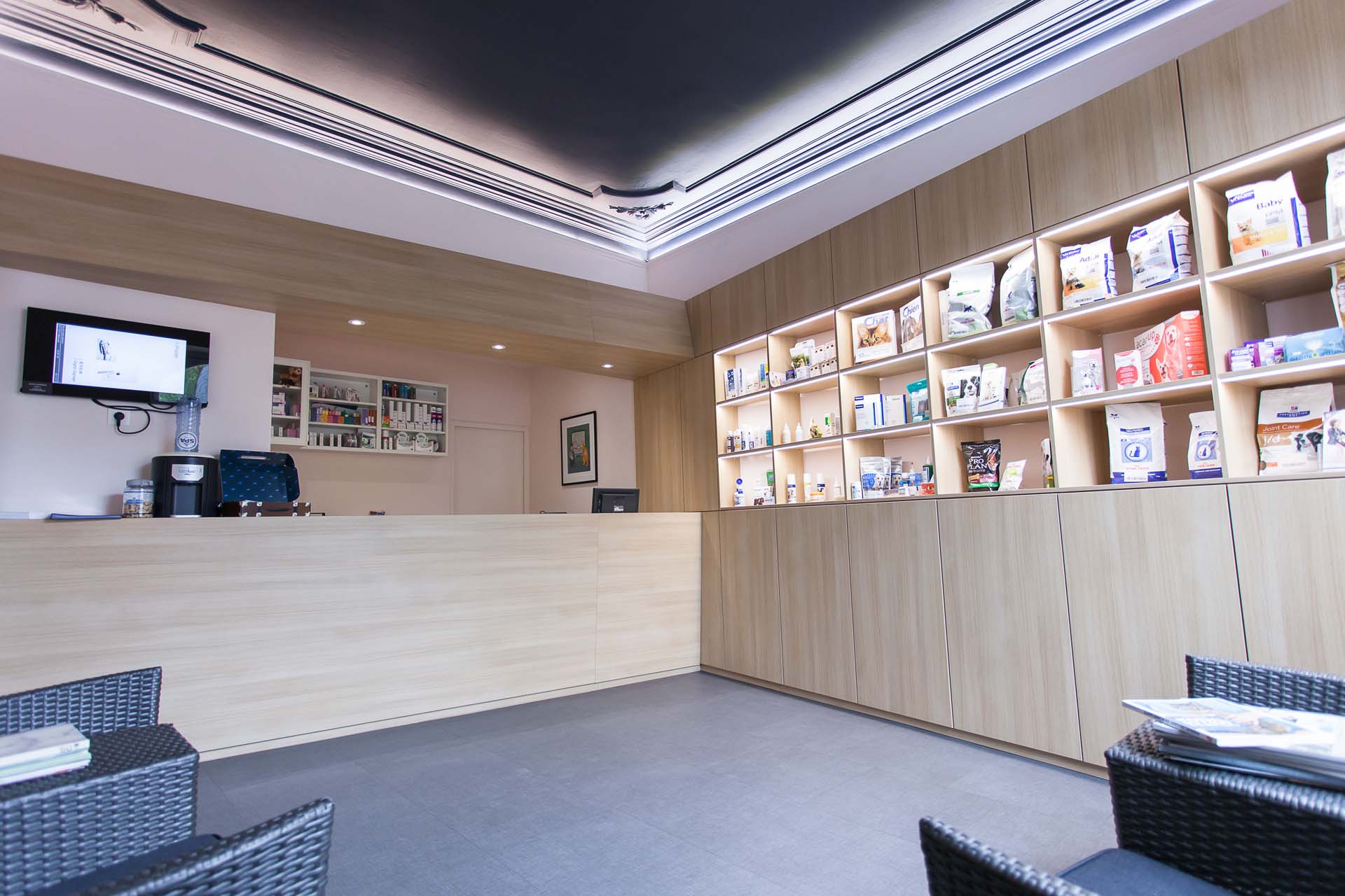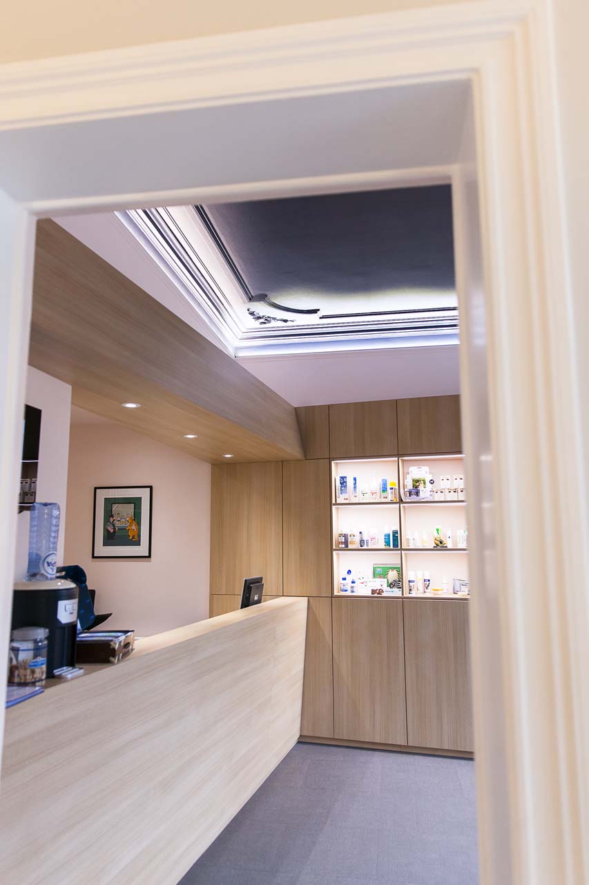Ce cabinet vétérinaire est installé depuis de nombreuses années au rez-de-chaussée d’une belle maison spadoise. La disposition des pièces n’offrait pas la possibilité d’accueillir leurs patients à quatre pattes et leurs clients comme les propriétaires le souhaitaient.