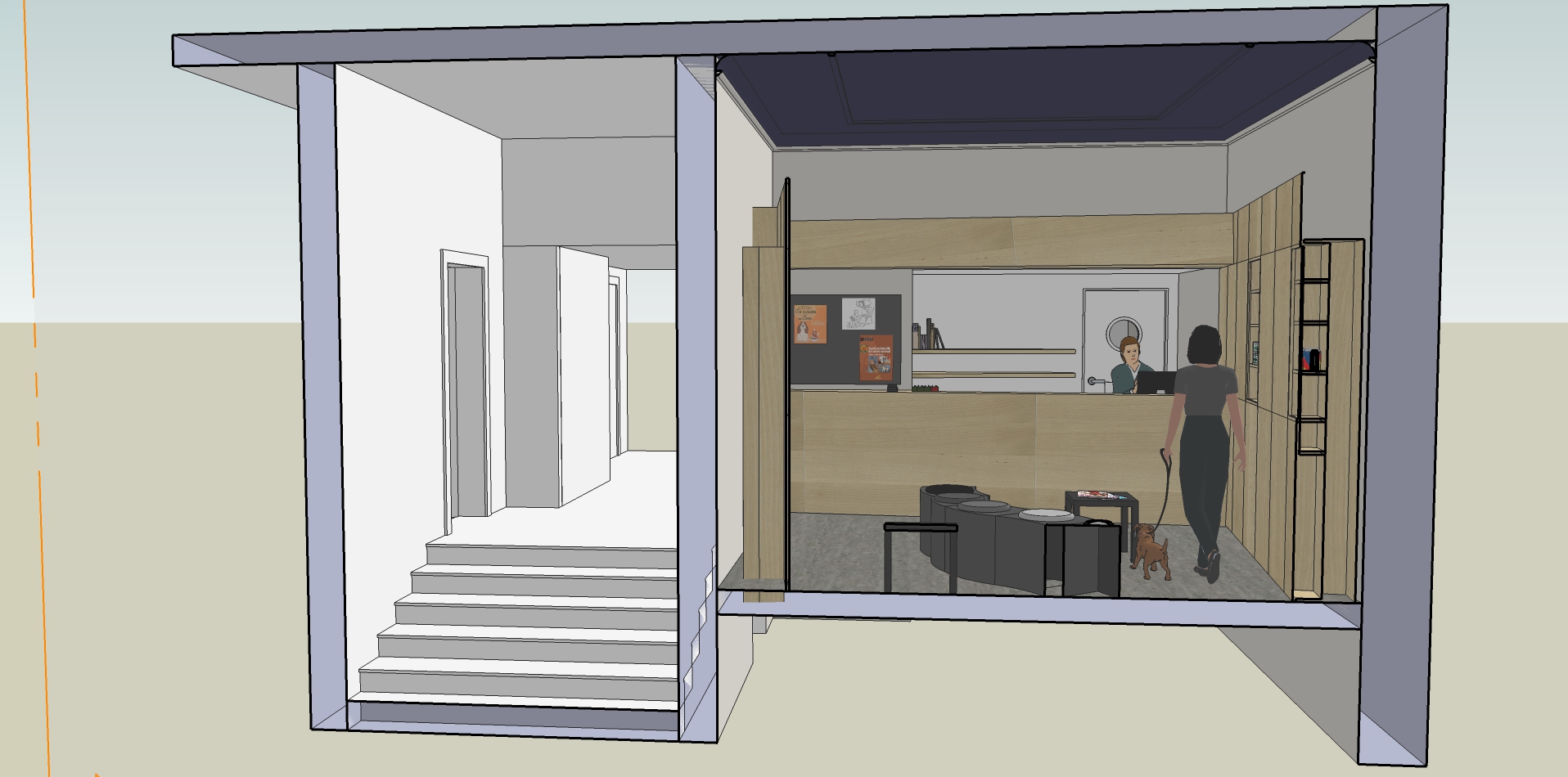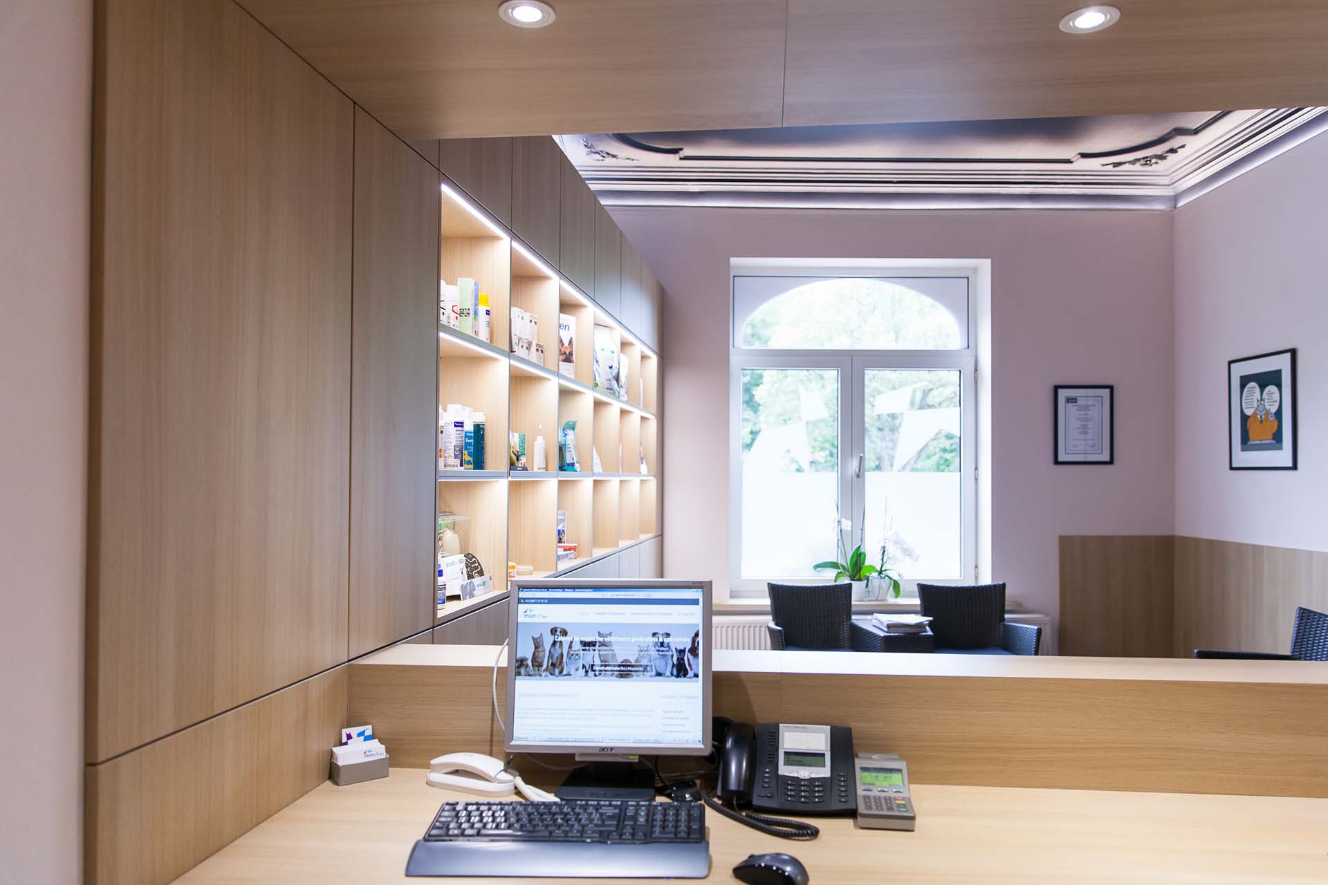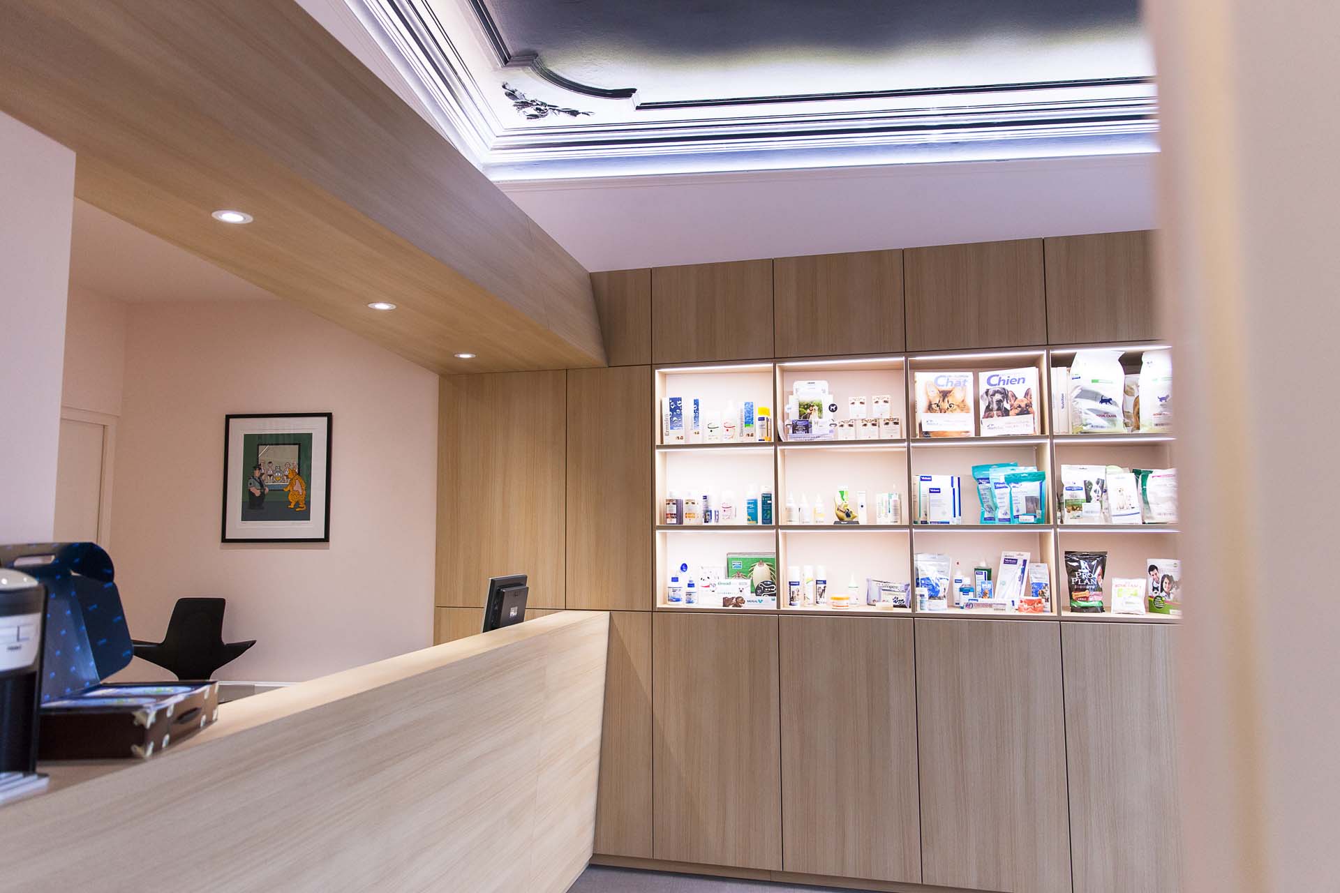 Ce cabinet vétérinaire est installé depuis de nombreuses années au rez-de-chaussée d’une belle maison spadoise. La disposition des pièces n’offrait pas la possibilité d’accueillir leurs patients à quatre pattes et leurs clients comme les propriétaires le souhaitaient.