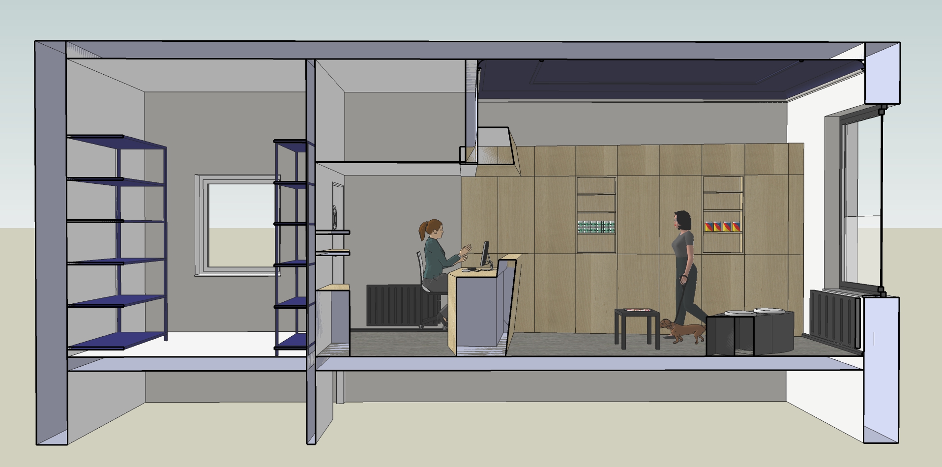 CEI s’est donc vu confier la mission d’étudier une nouvelle implantation permettant d’offrir un espace adapté à leurs besoins mais également un espace dédié au secrétariat et au stock de produits vétérinaires (alimentation, soins, médicaments, …).