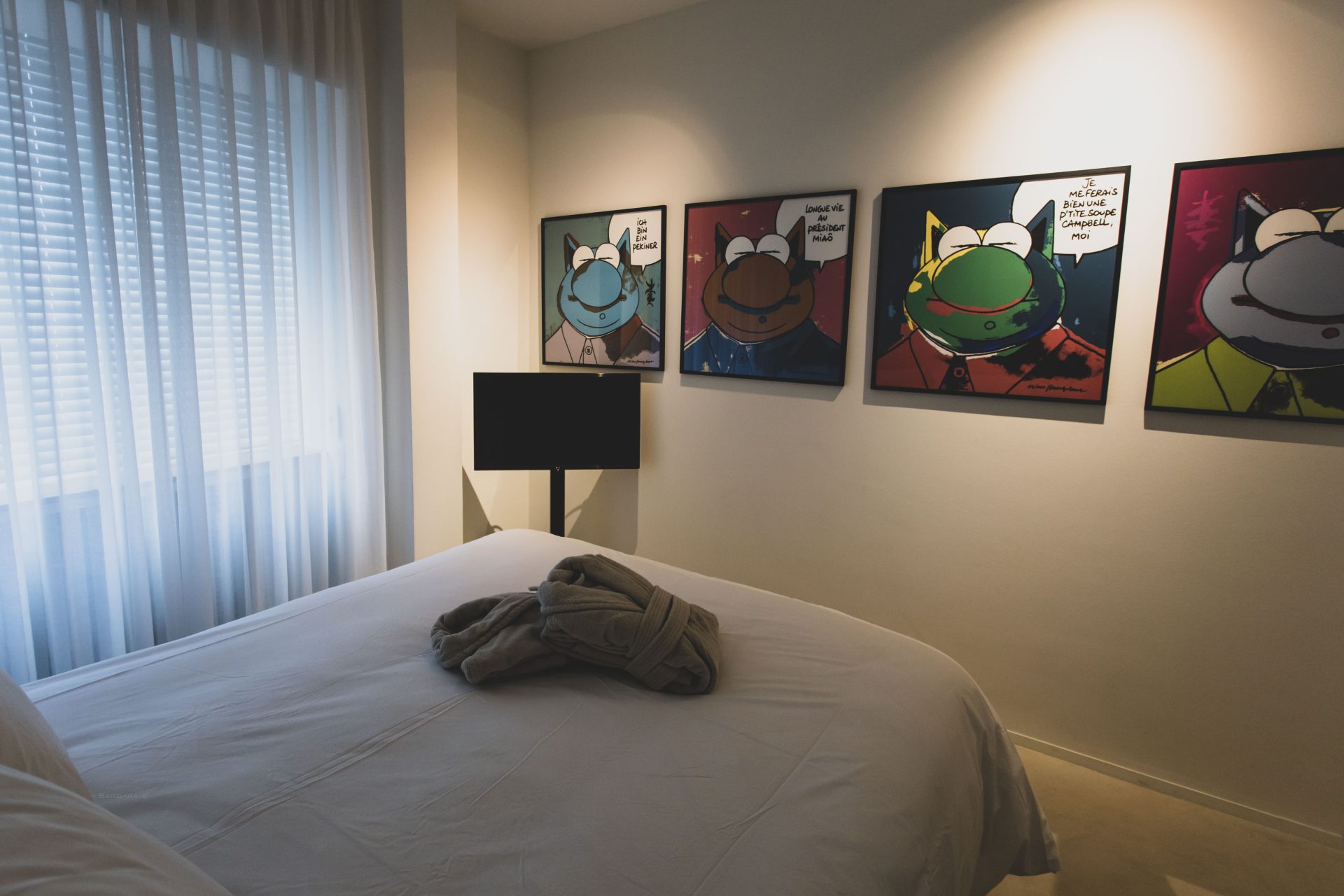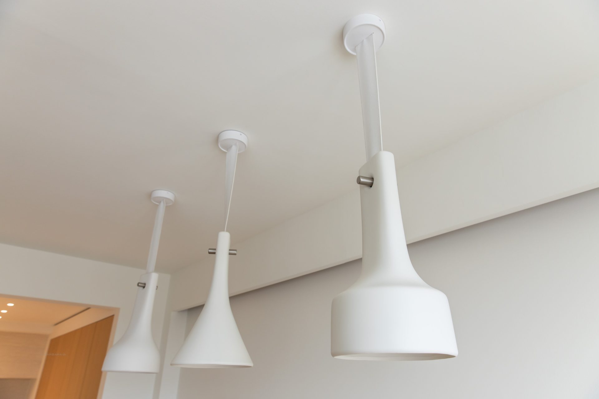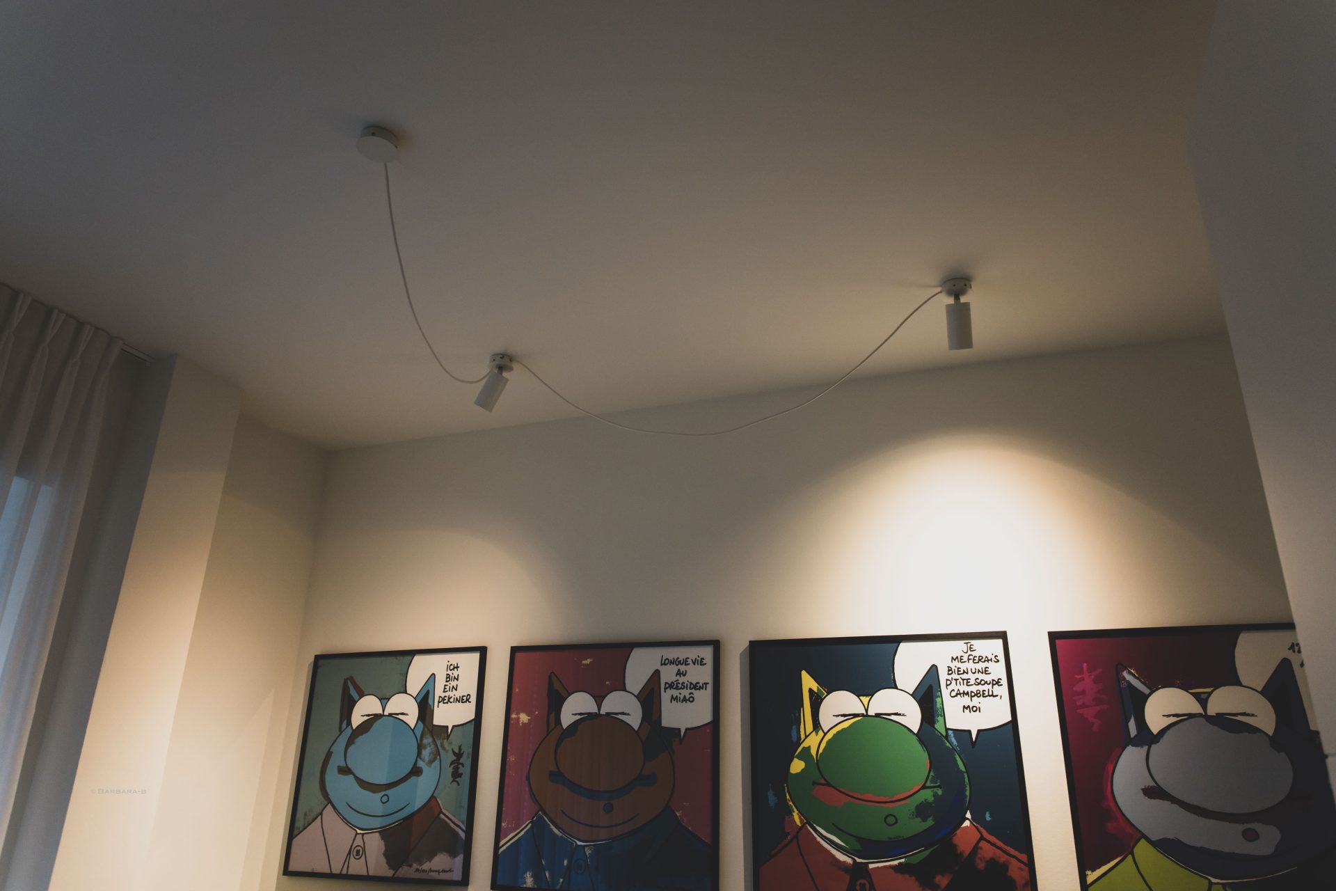 Les éclairages de Hind Rabii « habitent » avec élégance la pièce principale. Dans une chambre, la jolie Aim de Flos, en version blanche, anime l’espace.