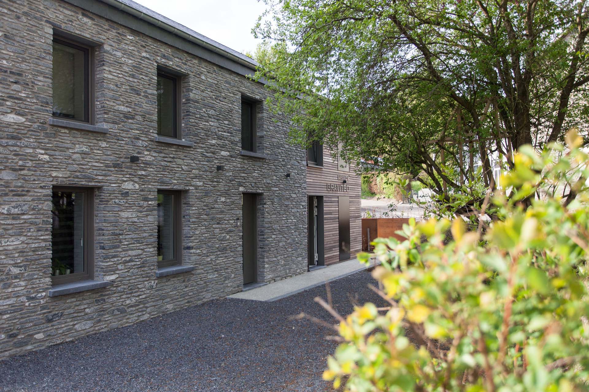 Installé depuis quelques années à Vaux-sur-Sûre avec son épouse et ses enfants, Monsieur Van Ooteghem était désireux de rapprocher ses activités professionnelles de sa vie de famille. Son habitation acquise et transformée pour les besoins privés, offrait encore de beaux volumes à aménager pour ses souhaits professionnels.