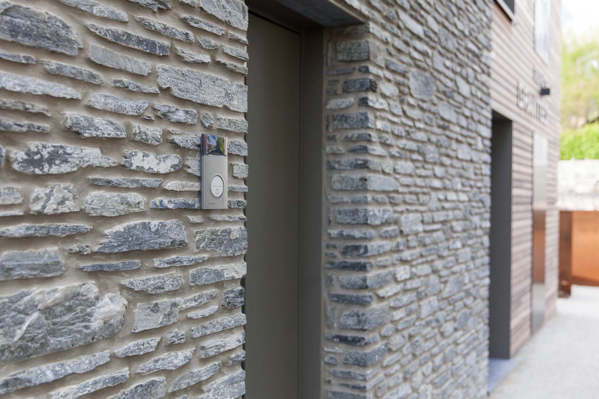 Dans la foulée des transformations intérieures, nous avons également traité les façades extérieures. Nous avons marqué clairement la séparation entre partie privée et partie professionnelle en utilisant deux matériaux totalement différents, posés chacun avec maîtrise pour un résultat vraiment exceptionnel !!! Les prises de vue « avant-après » parlent d’elles-mêmes. Les entreprises ont vraiment travaillé avec un soin immense pour obtenir des finitions parfaites : jetez un œil aux raccords entre les pierres naturelles et les habillages de fenêtre ou encore entre la pierre et le bardage bois…