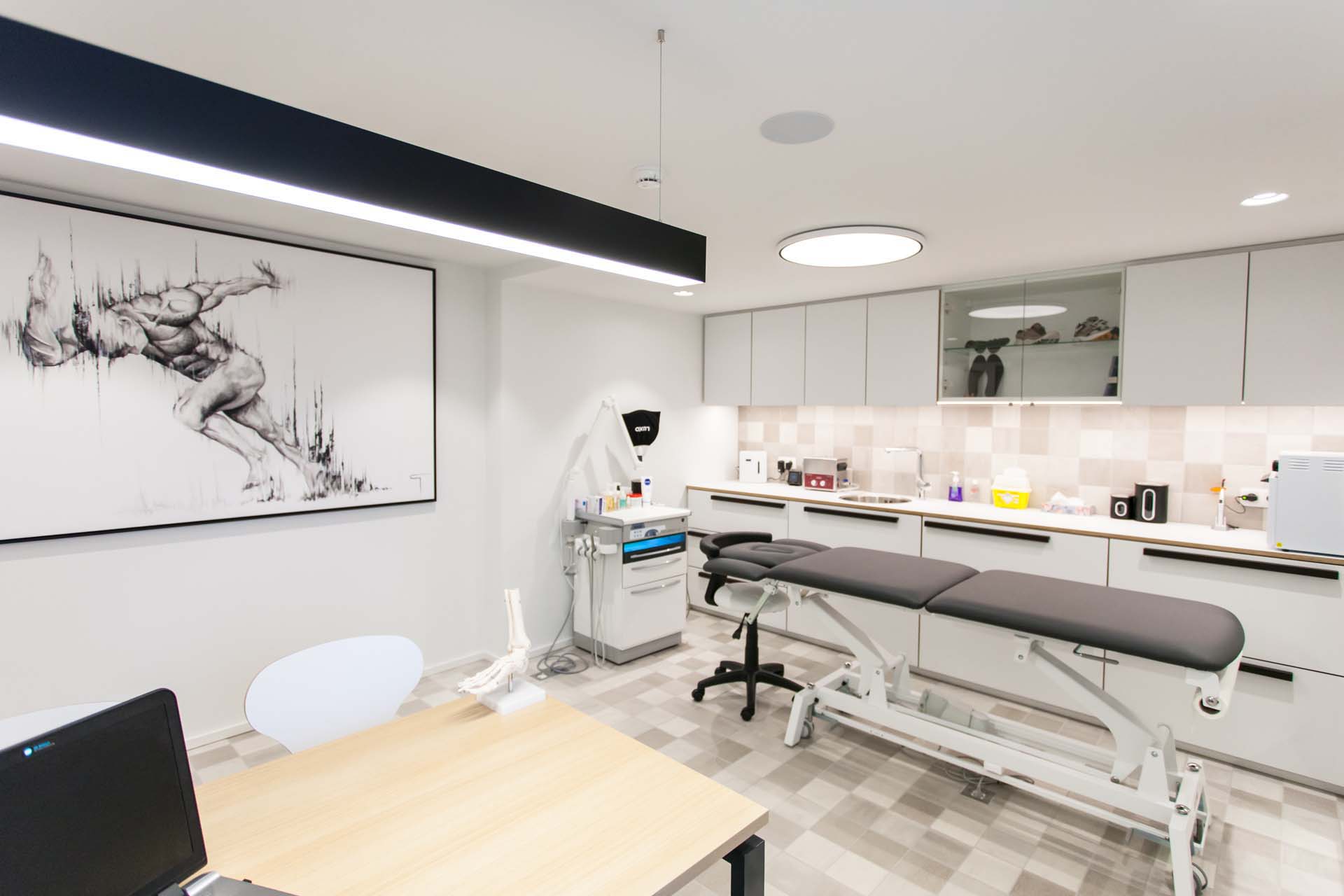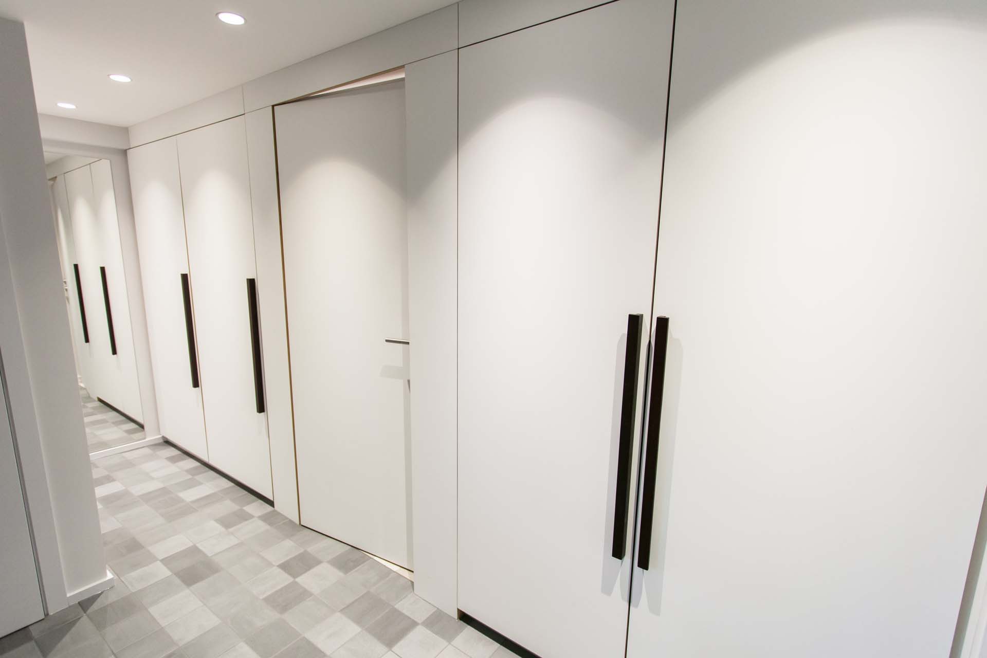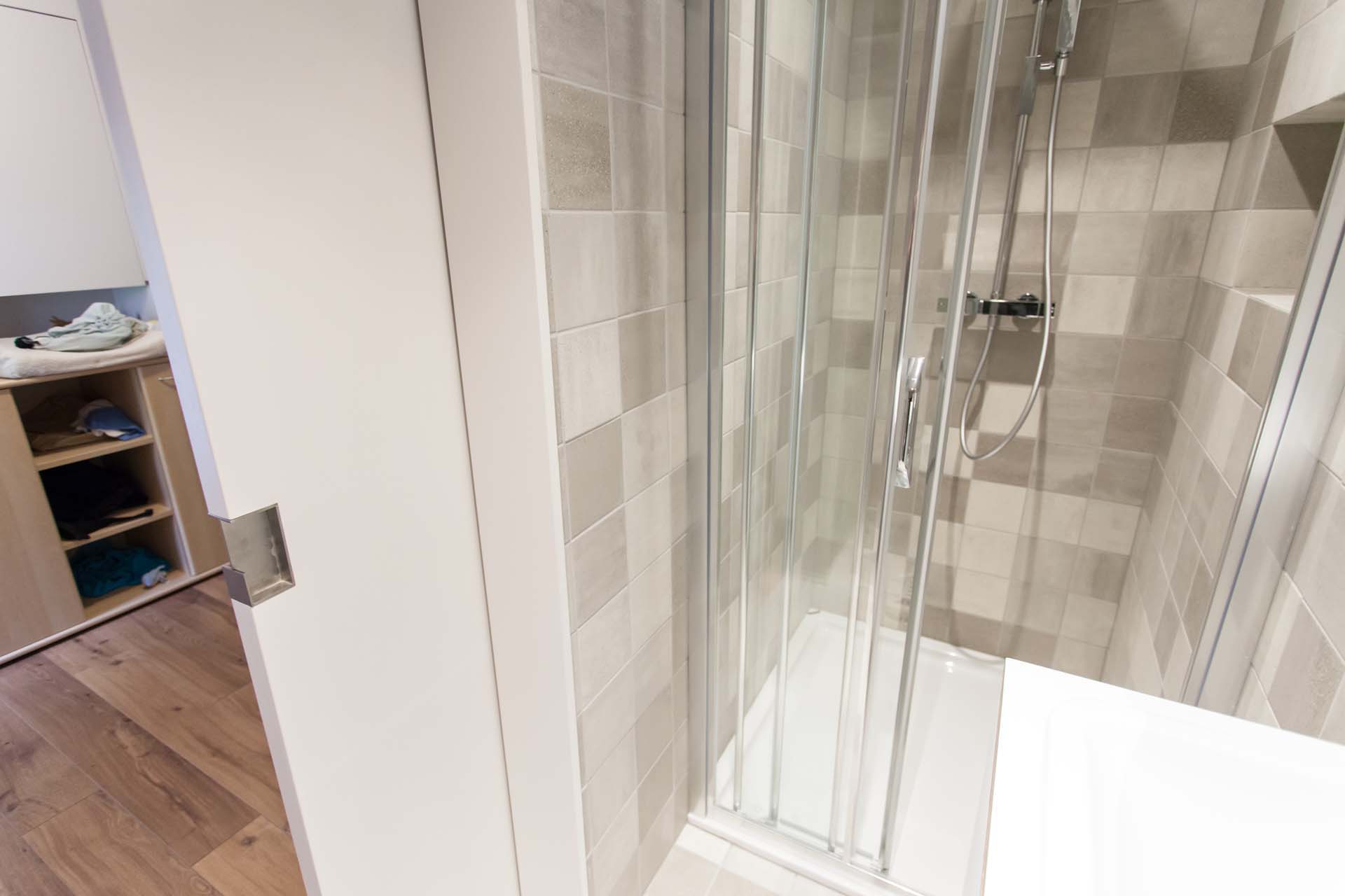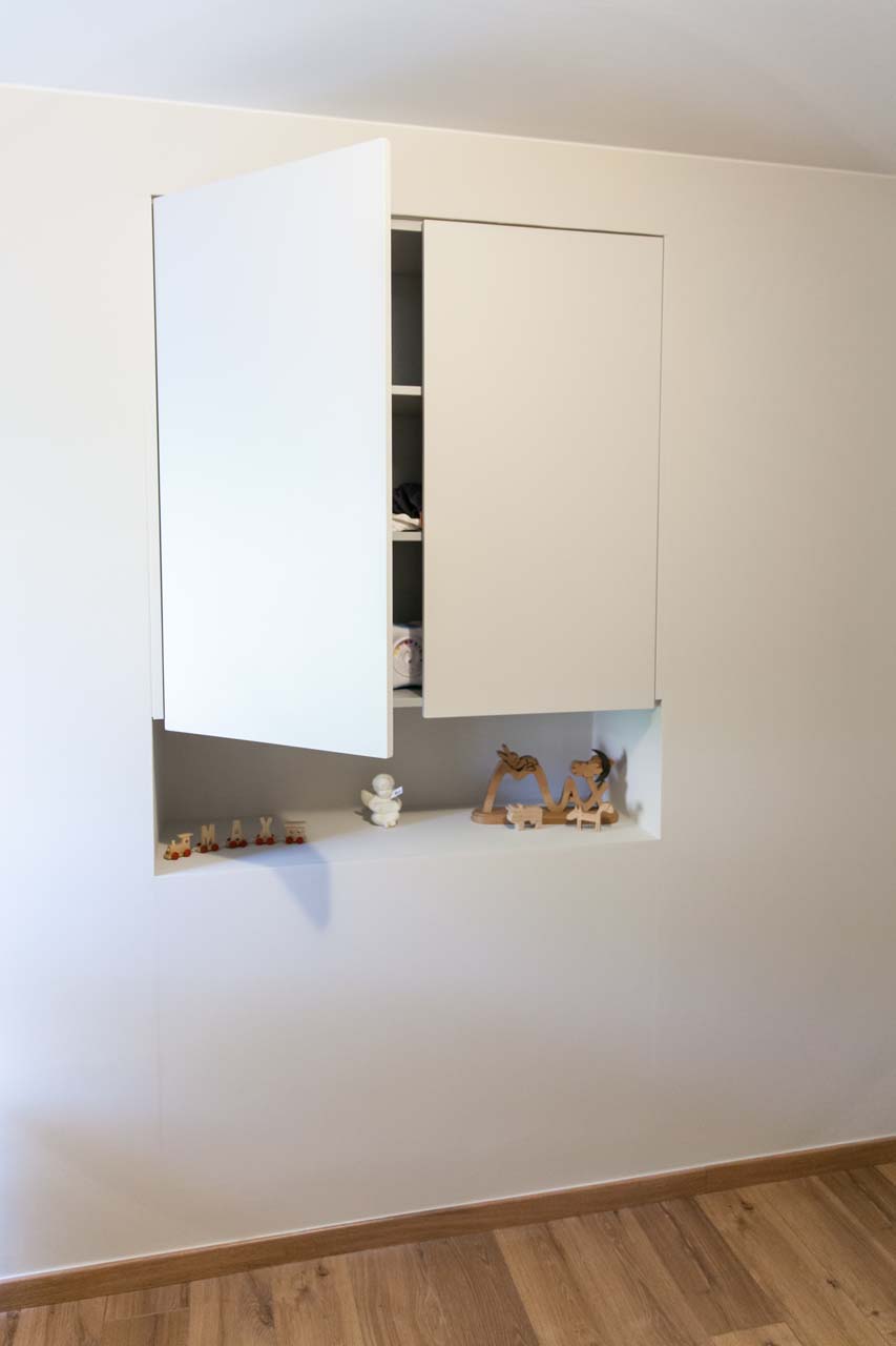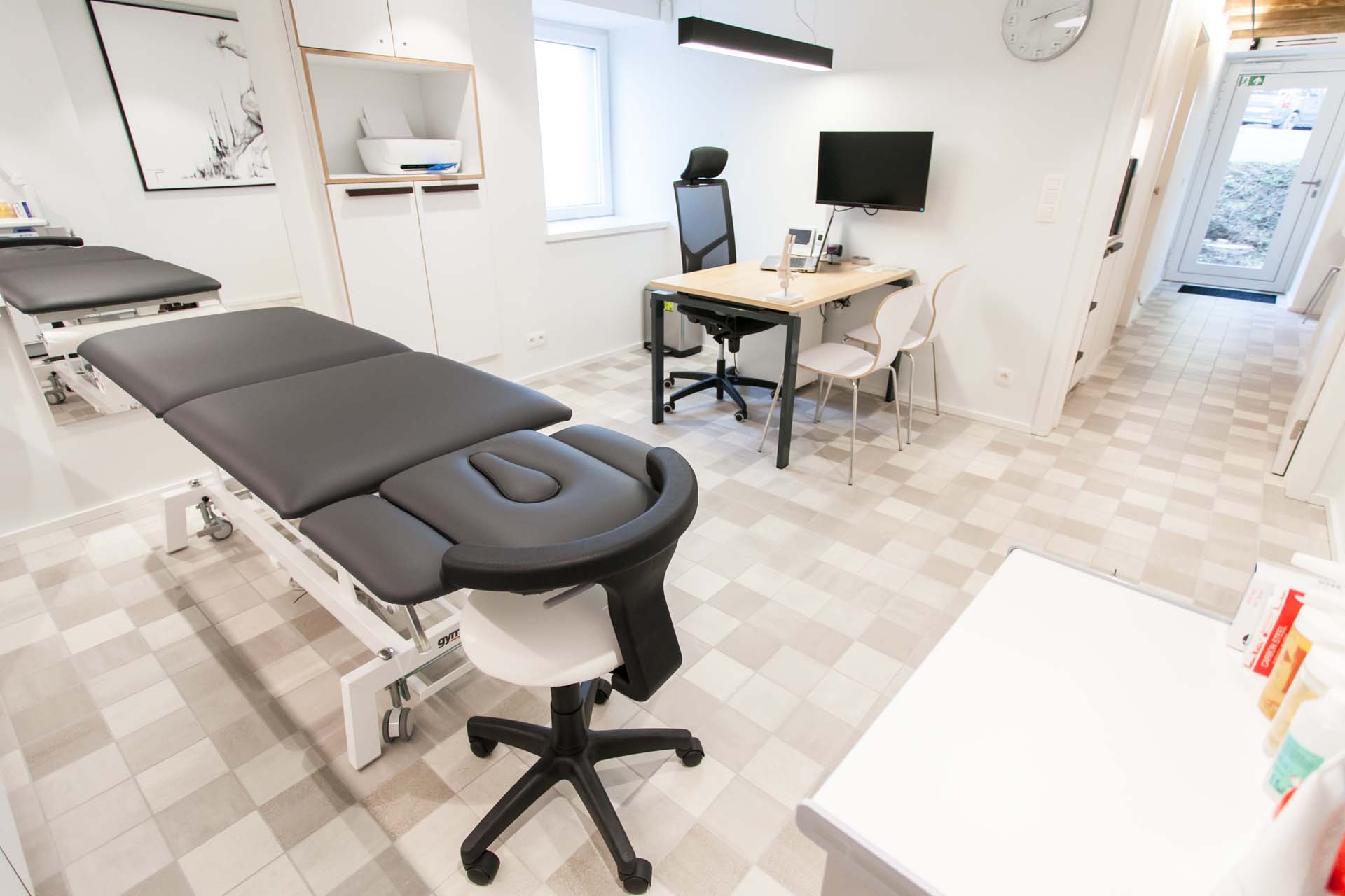 Cette mission n’a pas été simple : le bâtiment était anciennement une étable, les murs rejetaient encore les traces de la vie du bétail, les pièces étaient petites et les plafonds bas. C’est dans les situations les plus difficiles que notre créativité trouve écho. De sombre, les pièces sont devenues lumineuses, bien agencées et bien structurées autour du métier de podothérapeute. Le mobilier de la partie professionnelle a été conçu sur mesure sur base des besoins et des attentes de Monsieur Van Ooteghem. Les éclairages ont particulièrement été bien étudiés pour répondre aux exigences et à la précision des soins à apporter aux patients. Les accès eux aussi sont adaptés : ouvertures suffisamment larges pour les PRM.