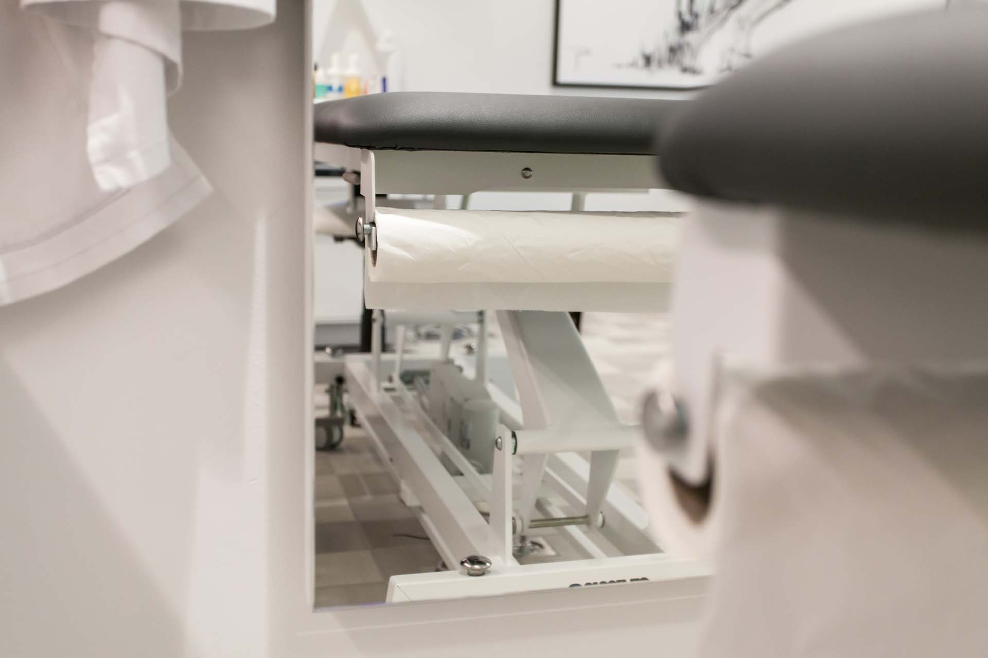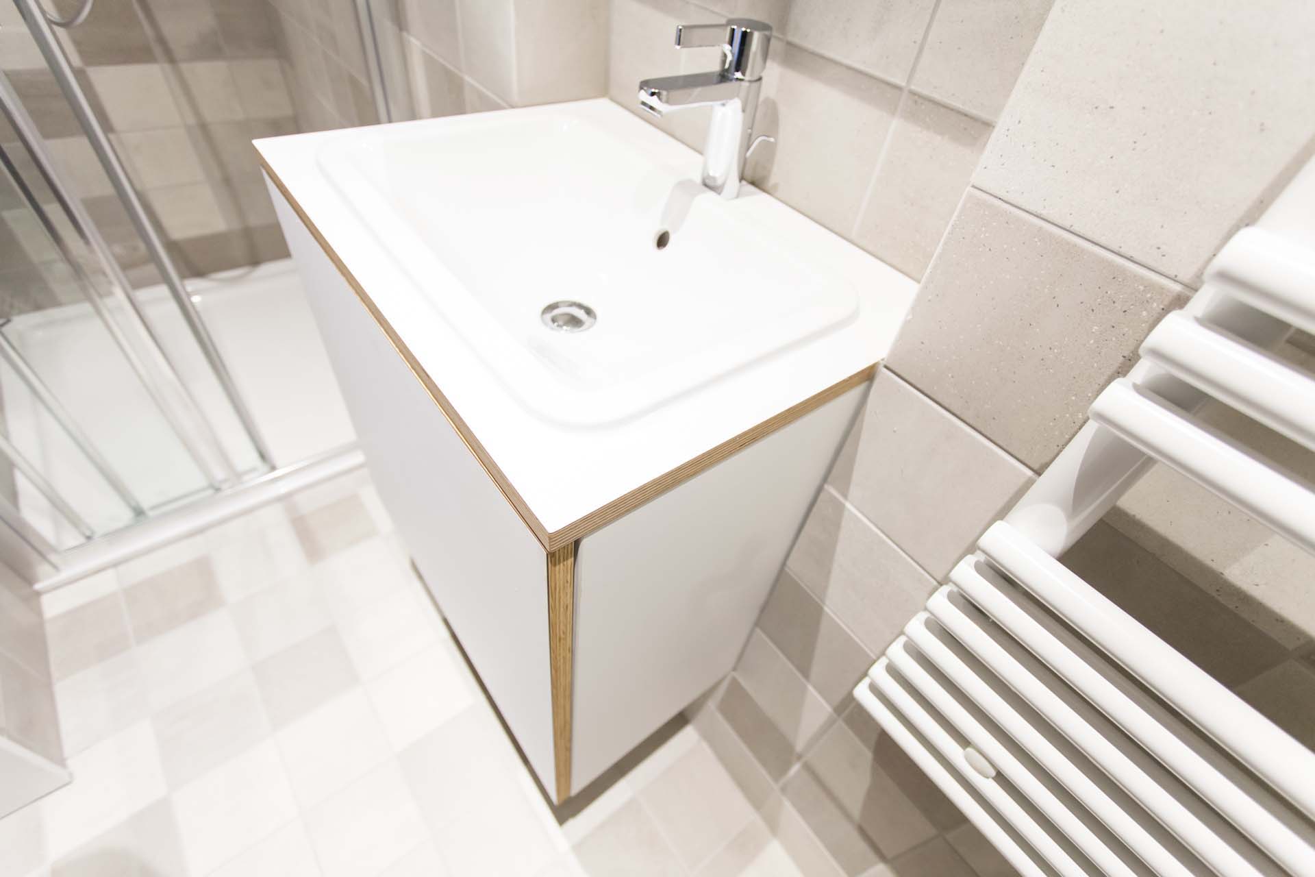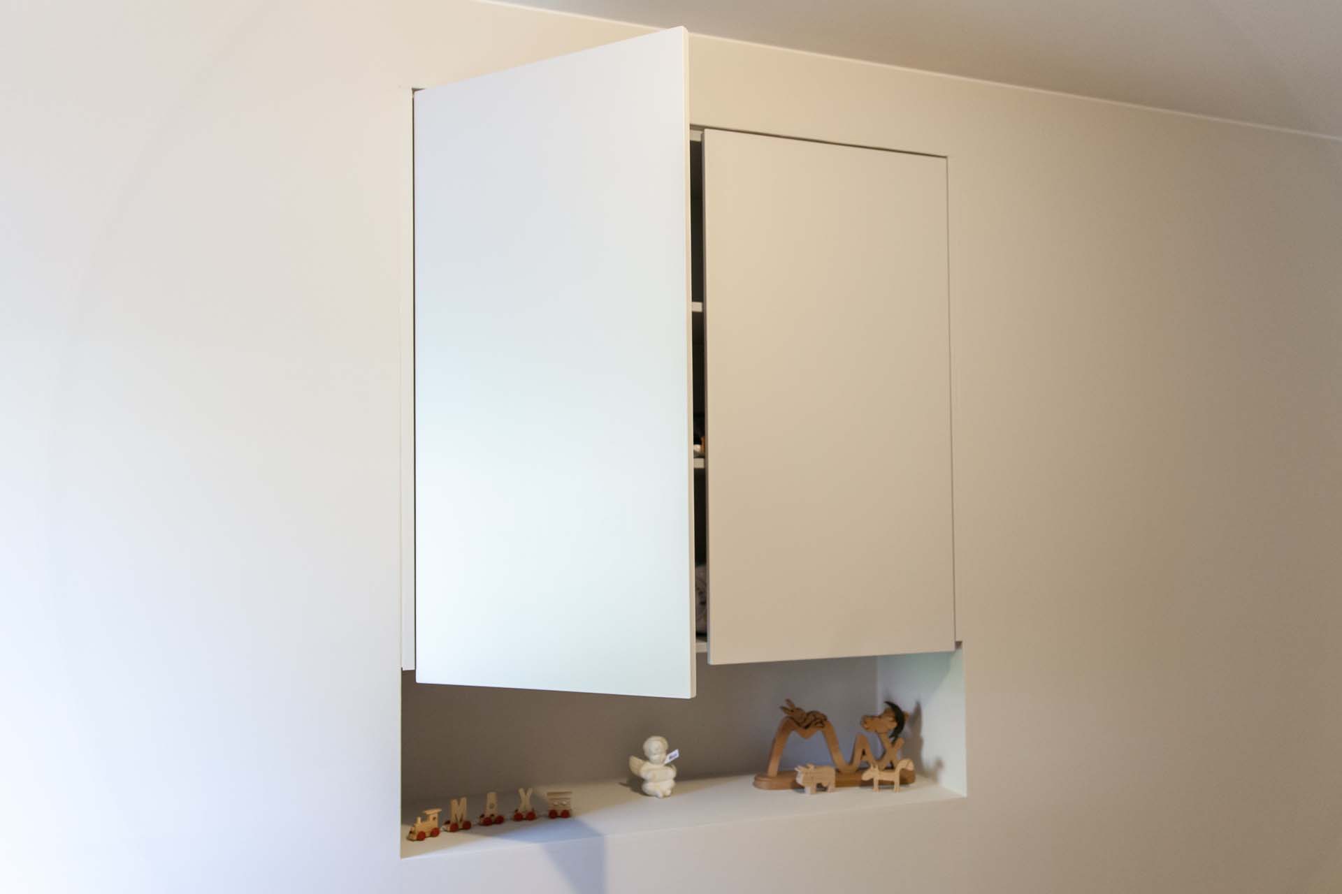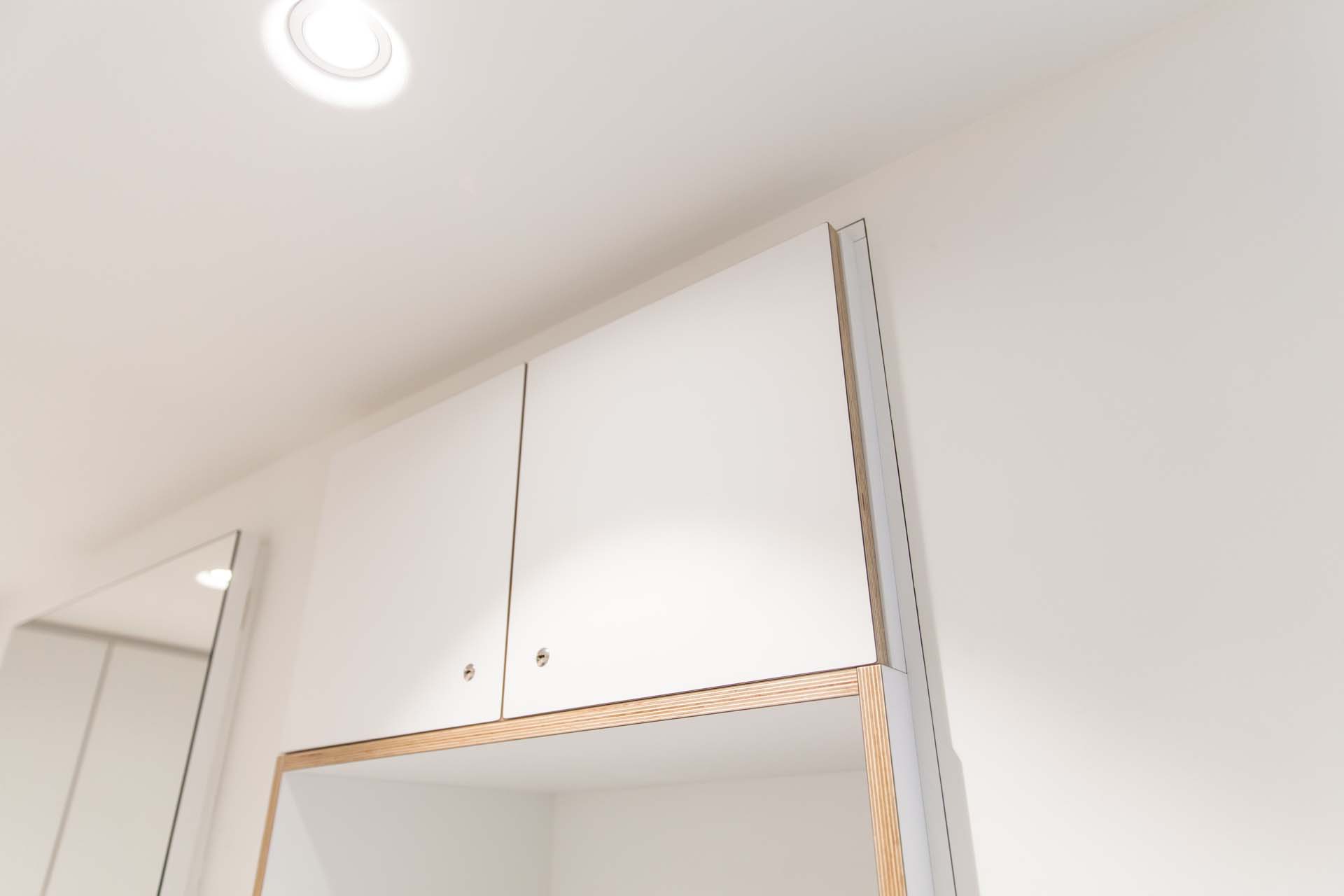 Cette mission n’a pas été simple : le bâtiment était anciennement une étable, les murs rejetaient encore les traces de la vie du bétail, les pièces étaient petites et les plafonds bas. C’est dans les situations les plus difficiles que notre créativité trouve écho. De sombre, les pièces sont devenues lumineuses, bien agencées et bien structurées autour du métier de podothérapeute. Le mobilier de la partie professionnelle a été conçu sur mesure sur base des besoins et des attentes de Monsieur Van Ooteghem. Les éclairages ont particulièrement été bien étudiés pour répondre aux exigences et à la précision des soins à apporter aux patients. Les accès eux aussi sont adaptés : ouvertures suffisamment larges pour les PRM.