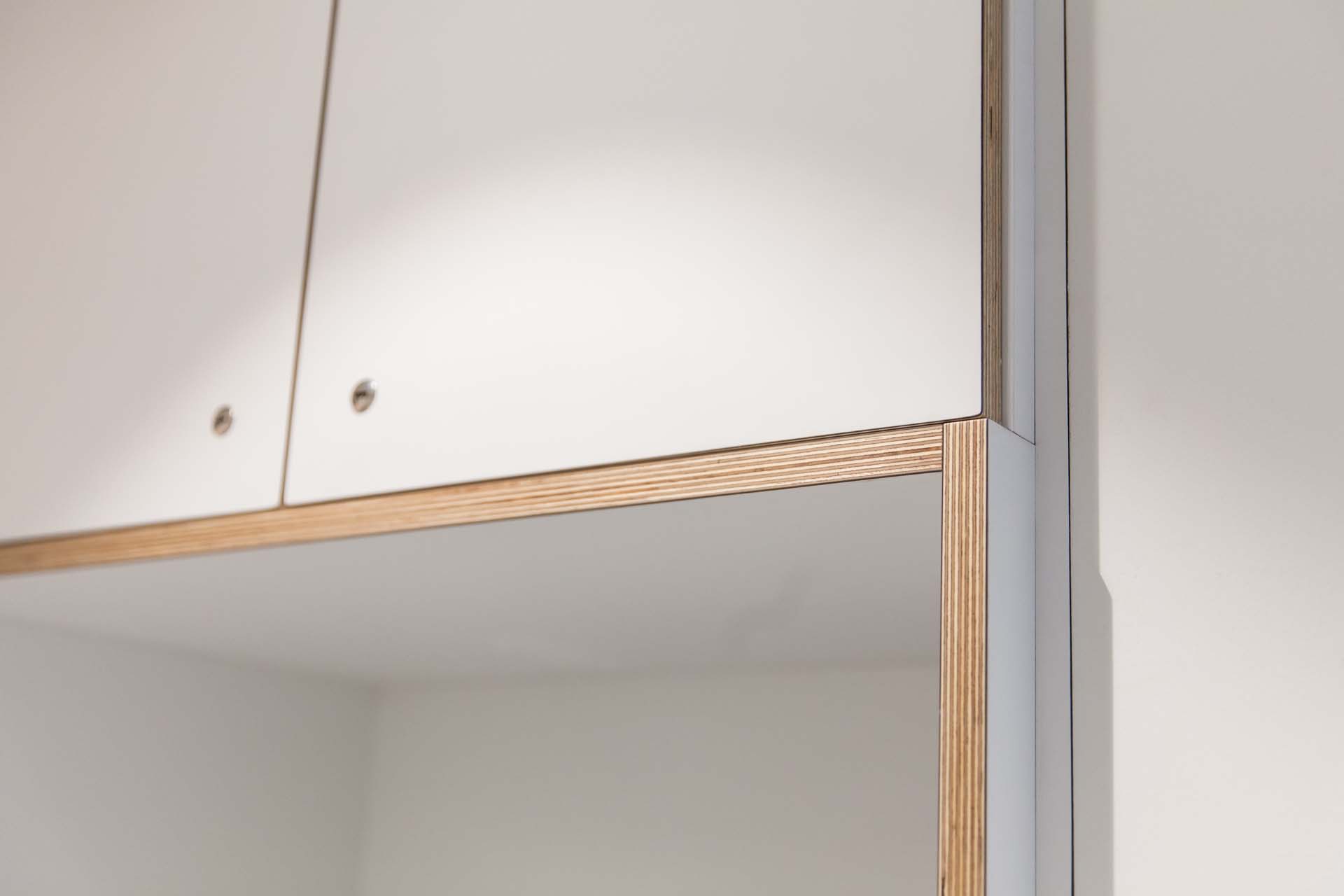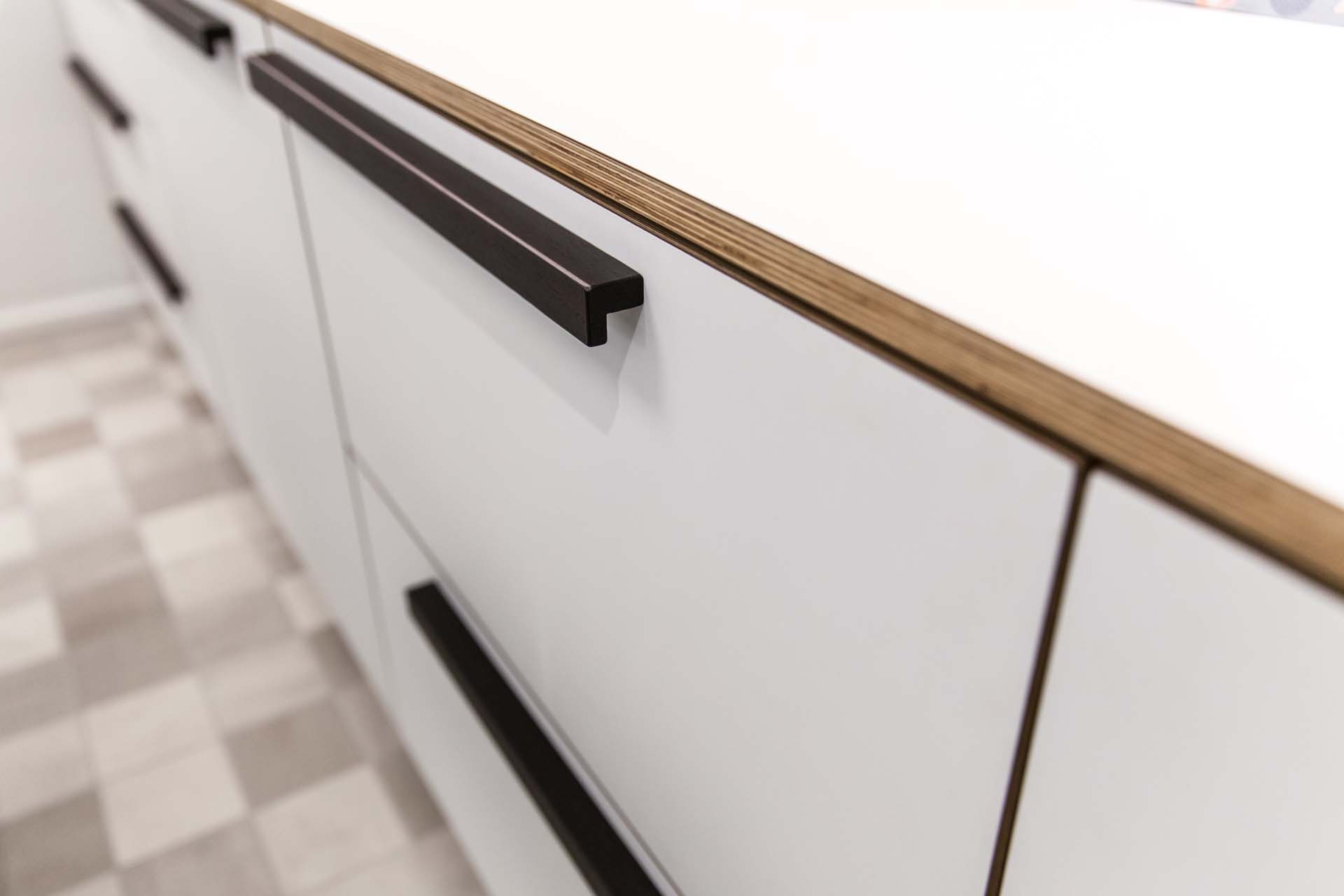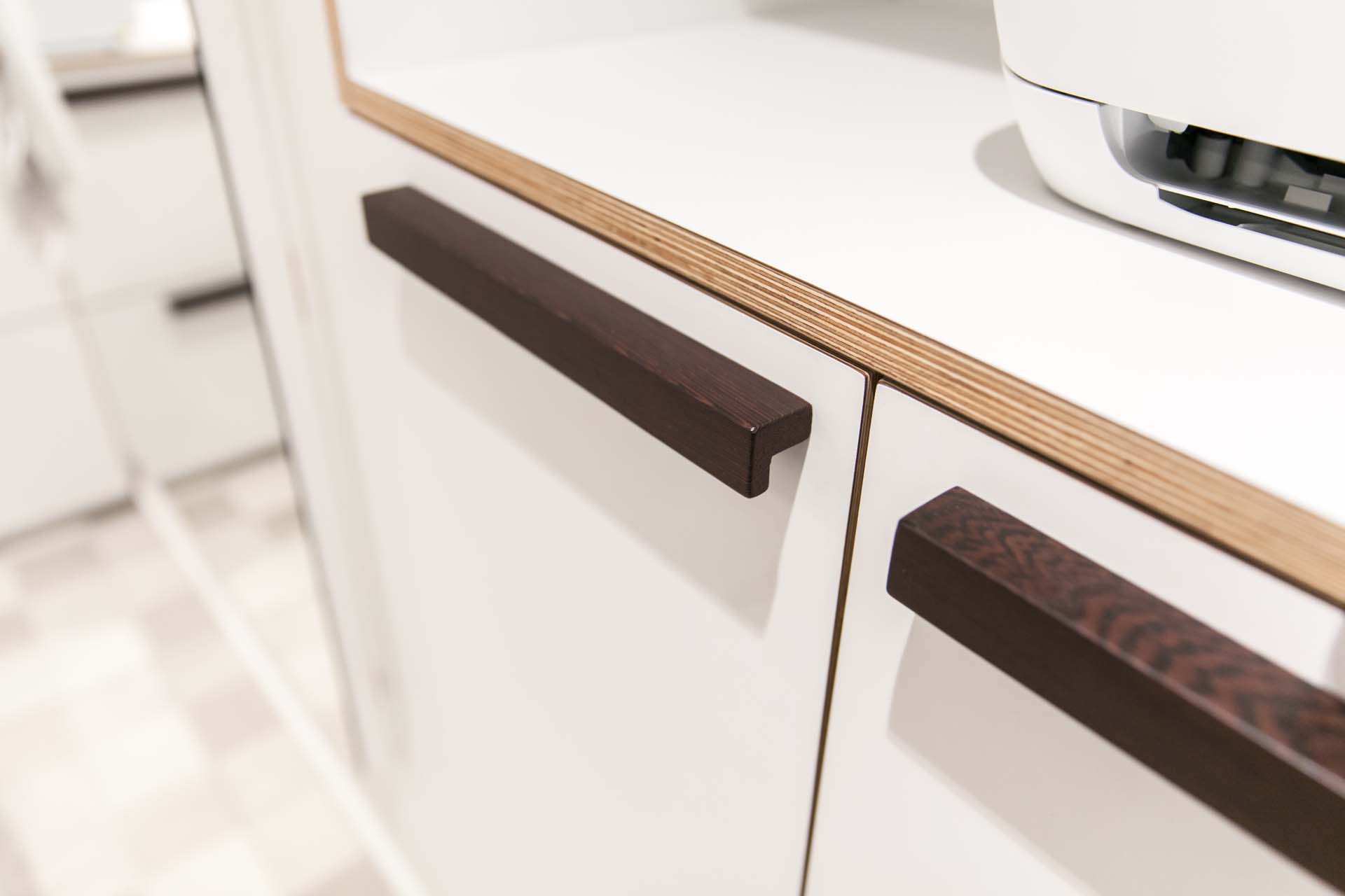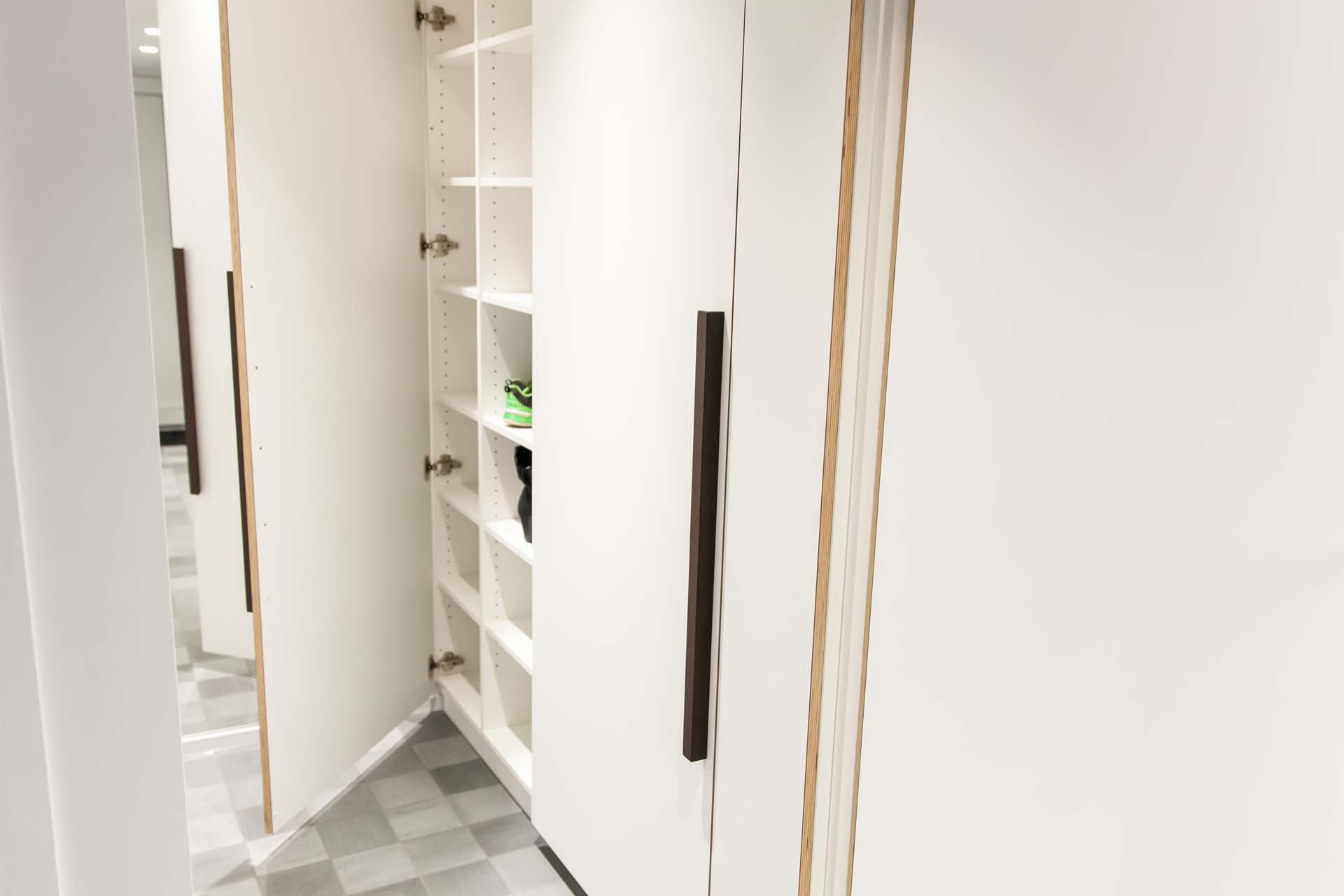 Cette mission n’a pas été simple : le bâtiment était anciennement une étable, les murs rejetaient encore les traces de la vie du bétail, les pièces étaient petites et les plafonds bas. C’est dans les situations les plus difficiles que notre créativité trouve écho. De sombre, les pièces sont devenues lumineuses, bien agencées et bien structurées autour du métier de podothérapeute. Le mobilier de la partie professionnelle a été conçu sur mesure sur base des besoins et des attentes de Monsieur Van Ooteghem. Les éclairages ont particulièrement été bien étudiés pour répondre aux exigences et à la précision des soins à apporter aux patients. Les accès eux aussi sont adaptés : ouvertures suffisamment larges pour les PRM.