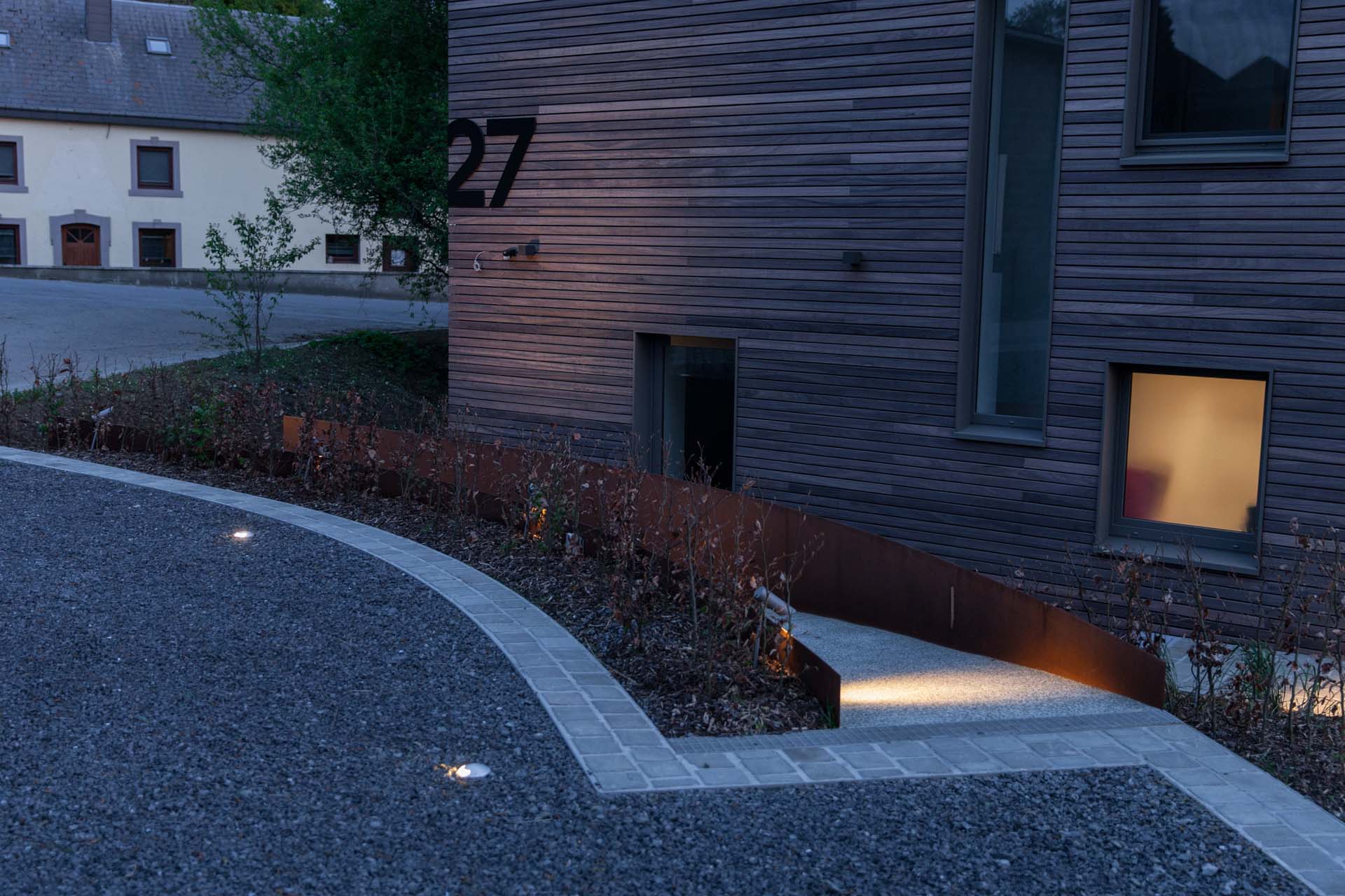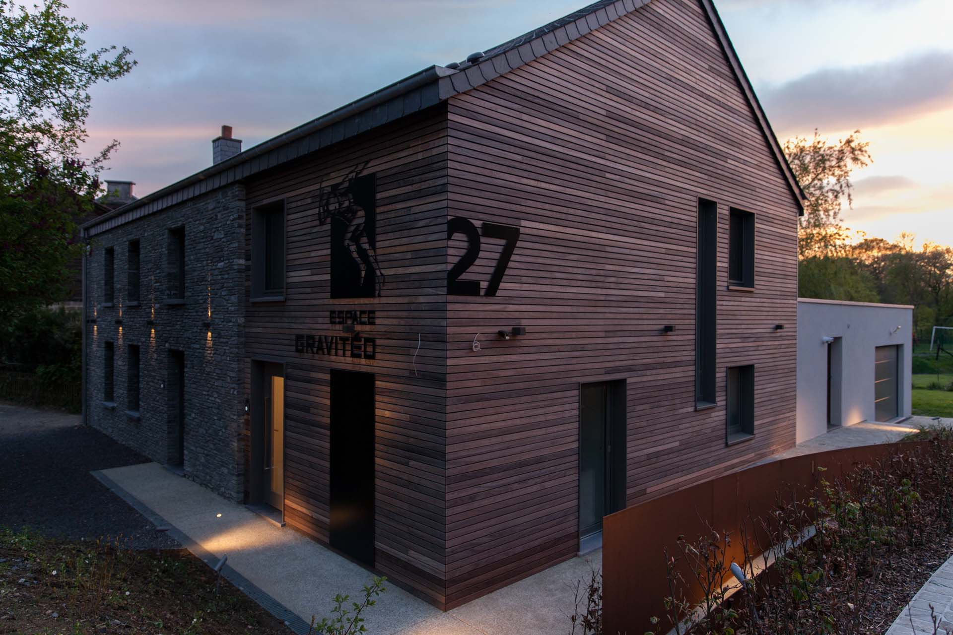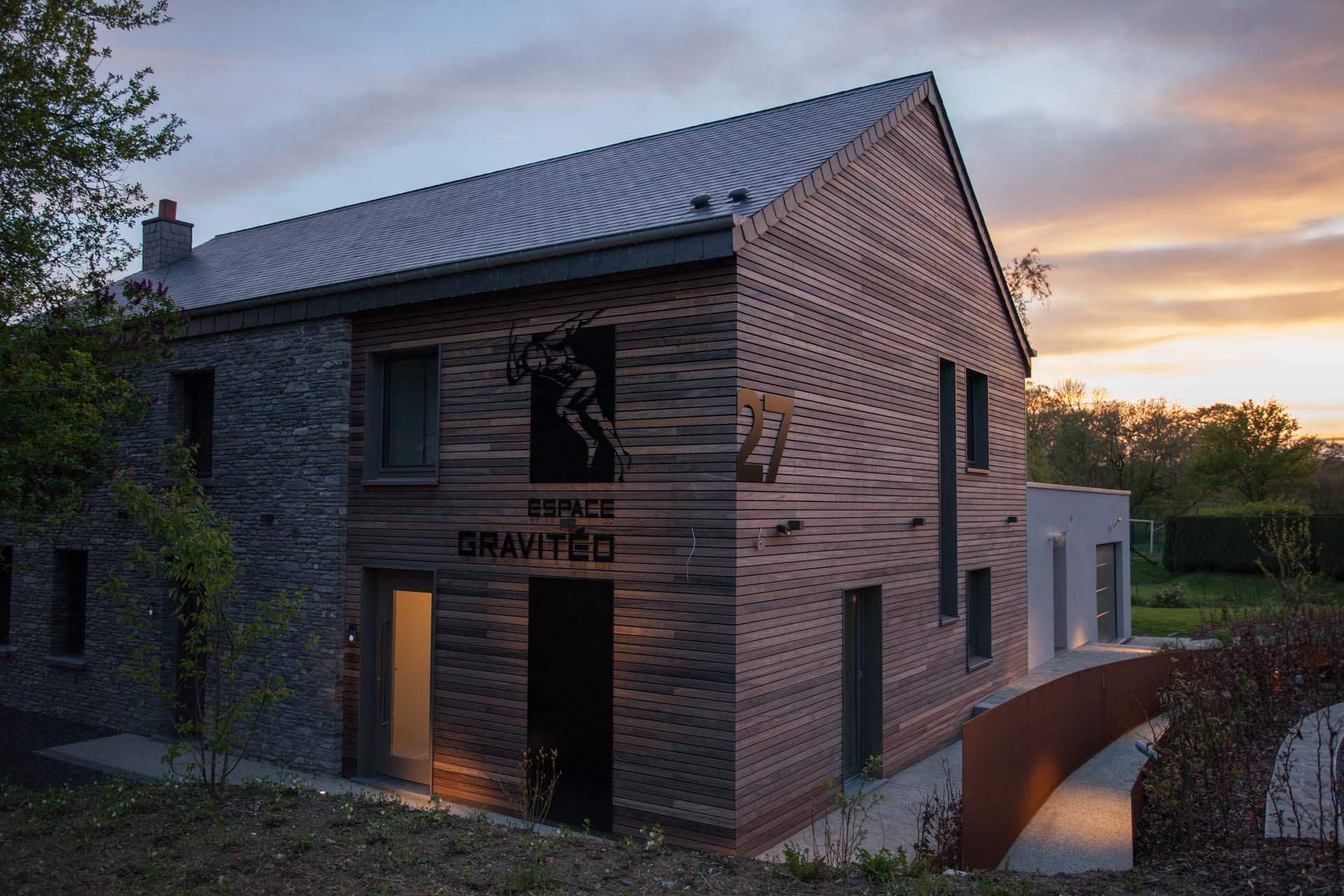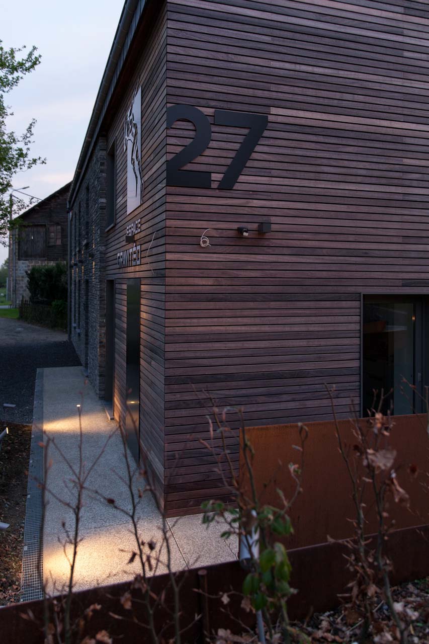 Installé depuis quelques années à Vaux-sur-Sûre avec son épouse et ses enfants, Monsieur Van Ooteghem était désireux de rapprocher ses activités professionnelles de sa vie de famille. Son habitation acquise et transformée pour les besoins privés, offrait encore de beaux volumes à aménager pour ses souhaits professionnels.